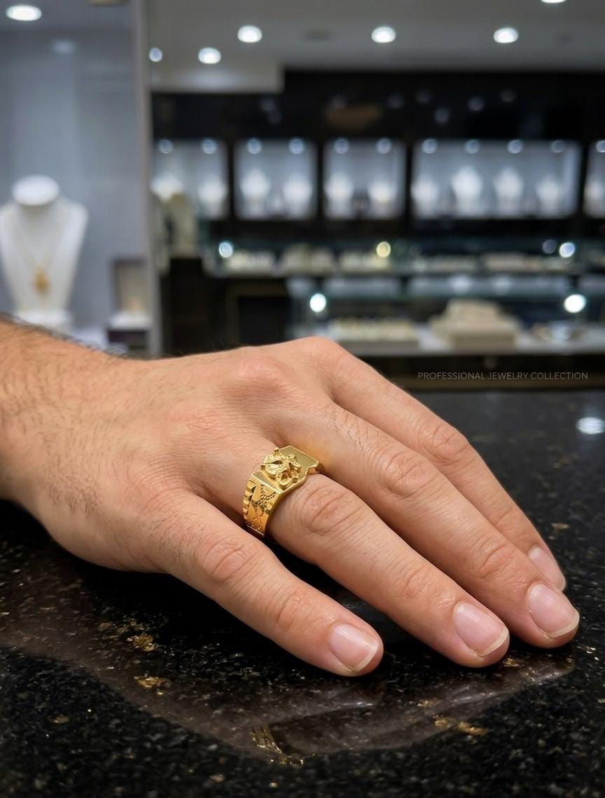 This exquisite 22K gold signet ring is a harmonious blend of traditional artistry and modern sophistication. Designed specifically for the discerning man, it represents more than just jewelry—it is a symbol of heritage, purity, and refined taste.
