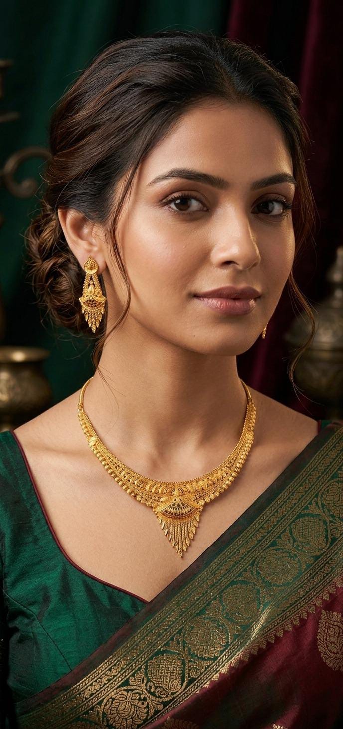This set is designed for the most significant moments in life. Its V-Shape makes it the ideal accompaniment for Deep-Neck Blouses, Banarasi Sarees, and Bridal Lehengas. Whether it is for a wedding (Shaadi), a grand festival, or a family heirloom collection, this set represents a lifetime investment in both style and gold purity.