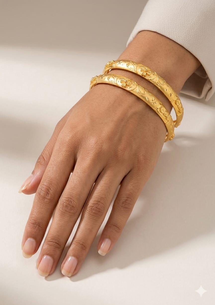 Discover the perfect harmony of heritage and high fashion with our signature 22K Gold Bangle Set. Designed for the woman who values both aesthetic brilliance and investment-grade quality, these bangles are more than just jewelry—they are a legacy in the making.