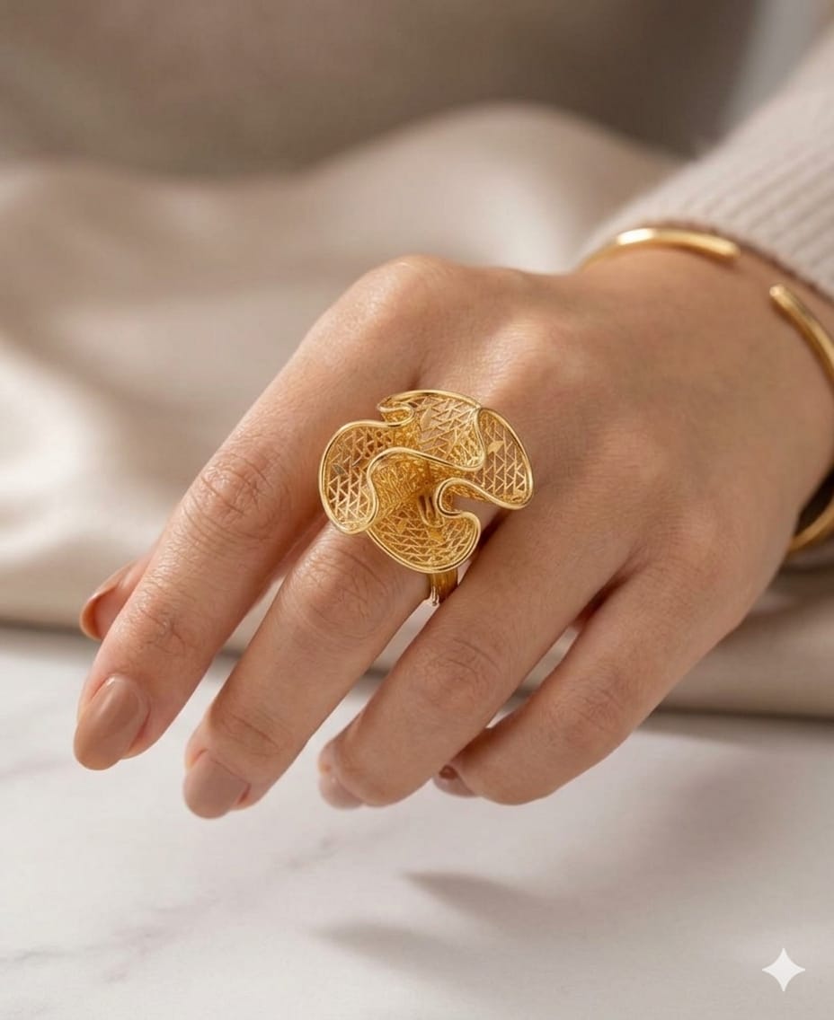 Experience the perfect blend of traditional craftsmanship and modern design. This exquisite ring features an intricate floral-inspired filigree pattern, crafted to capture the light from every angle.