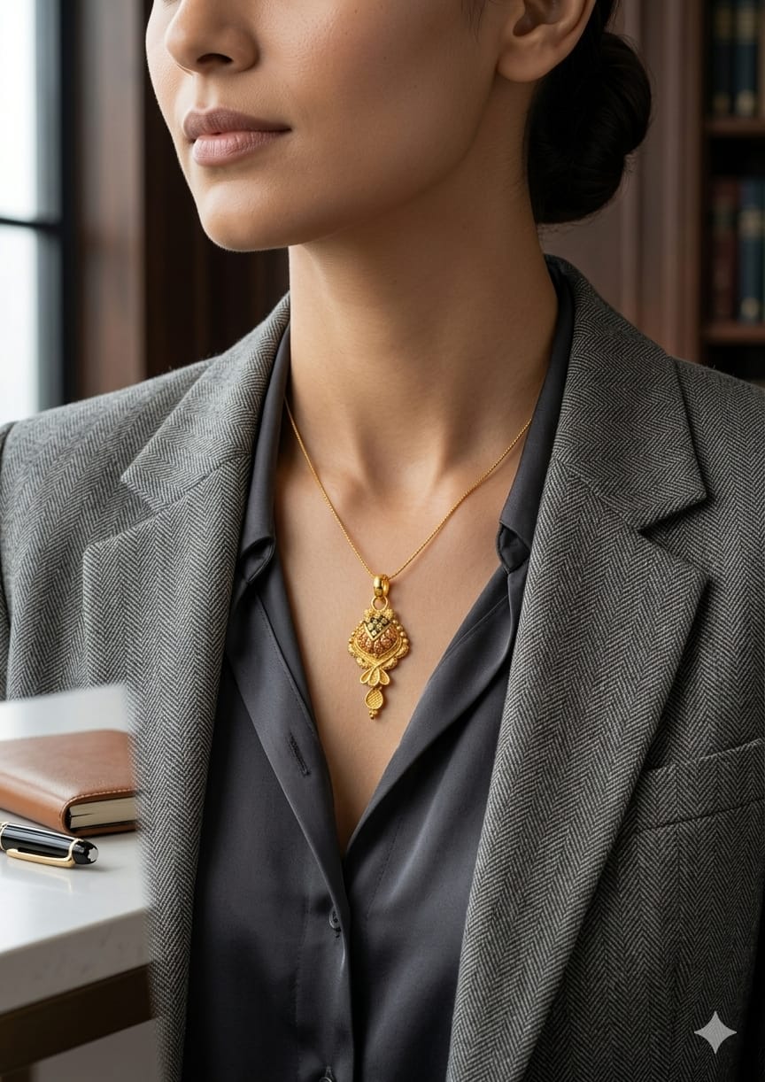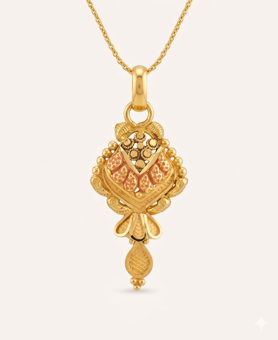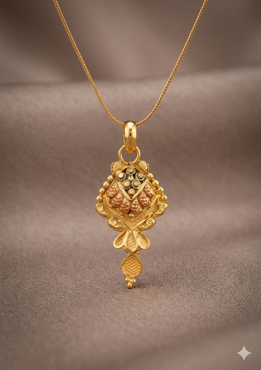 Embrace the perfect blend of traditional artistry and modern elegance with this masterfully crafted gold pendant from Om Jewellers. This piece is more than just jewelry; it is a testament to superior craftsmanship and a timeless investment in gold.