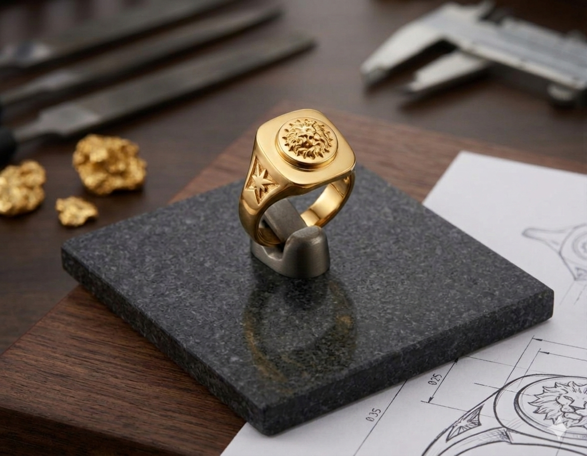 The focal point of this ring is a masterfully carved Lion emblem, set within a raised circular medallion. The lion is rendered in a high-relief “bas-relief” style, capturing the intricate textures of the mane and a fierce, noble expression. In many cultures, the lion represents strength, leadership, and protection, making this more than just a piece of jewelry—it is a symbol of character.
